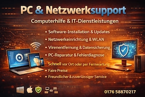 Computer & IT-Service | PC Hilfe & Netzwerkservice** Benötigen Sie schnelle und zuverlässige Hilfe rund um Ihren Computer oder Ihr Netzwerk? Ich biete professionelle IT-Dienstleistungen zu fairen Preisen! Installation von Programmen & Software Einrichtung von WLAN & Netzwerk Fehlerbehebung & ...