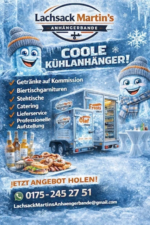 Wir vermieten einen Kühlanhänger im Raum München für Veranstaltungen aller Art. Ideal für Hochzeiten, Geburtstage, Firmenfeiern, Vereinsfeste, Gartenpartys oder Festivals. Der Anhänger eignet sich perfekt zum Kühlen von: * Getränken * Bierfässern * Softdrinks * Speisen * Eventbedarf Leistungen Vorteile: * ...