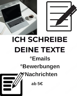 Hey, ich biete an, für dich professionelle und gut formulierte Texte zu schreiben. Egal ob: - E-Mails (z. B. an Firmen, Schule, Bewerbungen) - Bewerbungen & Lebensläufe - Texte für Social Media - Nachrichten oder sonstige Texte Ich achte auf: gute Formulierung klare Struktur ...
