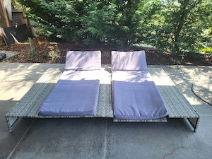 grau mit Auflagen, Maße 2,10 x 1,60m Höhe 23cm, reparaturbedürftig an Selbstabholer zu verschenken.
