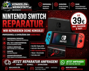 Ihre Nintendo Switch funktioniert nicht mehr einwandfrei oder lädt nicht? Wir bieten Ihnen eine fachgerechte und zuverlässige Reparatur Ihrer Konsole mit präziser Diagnose und professioneller Instandsetzung. - Reparatur ab 39 (inkl. Diagnose & vollständigem Funktionstest) - Transparente Preise ...
