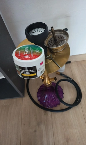 verkaufe meine gebrauchte alladin Shisha kohleanzünder sowie selbstzündkohle dampfsteine und noch ein bisschen Wassermelonen ICE Tabak nikotinfrei wäre dabei sowie der Kaminaufsatz und das was man auf dem Bild sehen kann