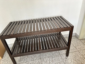 Ich verschenke mein Schuhregal Farbe: dunkelbraun Maße: Breite 79 cm Tiefe 37 cm Höhe 50 cm