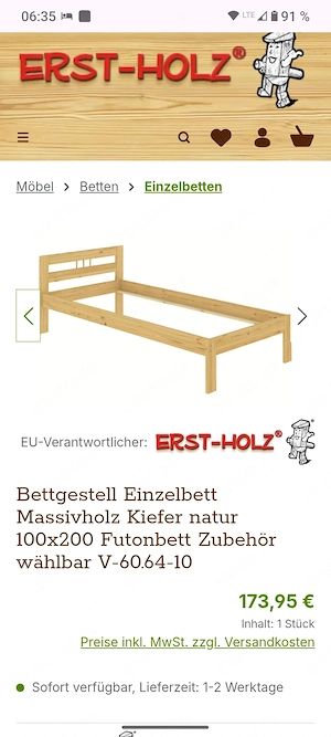 Möchte hier ein sehr schönes und sehr gut erhaltenes Bettgestell (Einzelbett) Massivholz Kiefer natur Futonbett 100x200cm, inklusive Rolllattenrost von der FA Erst-Holz verkaufen (schon abgebaut aber sehr leicht selbst aufzubauen) ...
