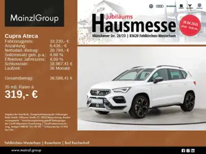 CUPRA Ateca 1.5 TSI DSG AHK SHZ 360° Klima CarPlay. CUPRA Ateca 1.5 TSI DSG AHK SHZ 360° Klima CarPlayAUSRÜSTUNG: DAB-Radio,Tagfahrlicht,Radio,Lederlenkrad,Schlüssellose Zentralverriegelung,ESP,Isofix,Spurhalteassistent,Fernlichtassistent,Anhängerkupplung,Kopfairbag,Musikstreaming integriert,Katalysator,Elektrische ...