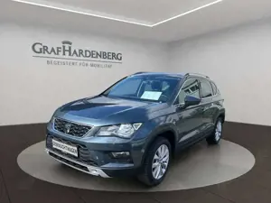 SEAT Ateca Style 1.4 TSI DSGAUSRÜSTUNG: Pannenkit,Lederlenkrad,Schlüssellose Zentralverriegelung,ESP,Isofix,Spurhalteassistent,Fernlichtassistent,Kopfairbag,Elektrische Seitenspiegel,Tempomat,Berganfahrassistent,Sprachsteuerung,LED-Tagfahrlicht,Freisprecheinrichtung,Innenspiegel automatisch abblendend,Elektrische ...