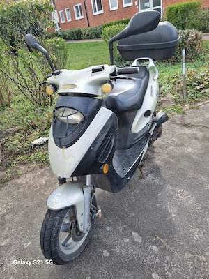 Scooter - Roller für Bastler (Langversion von Baumarkt ) 50ccm, 4takt, 3.4 PS Variomatik mit neuen Reifen hinten und vorne, der Scooter ist für ein Jahr Versichert, und voll Getankt Neue sind: Bremsbeläge, Batterie, Radlager vorne, Rückleuchte, Stromgleichrichter, Tachoseil, Kupplung, Antriebsriemen ...