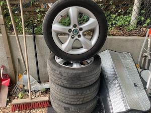 Skoda Alu Felgen mit Sommerreifen Felgen im Guten Zustand ohne Beschädigung Von Continental 195 55 15 Waren auf Fabia Passend auch auf andere skoda Modelle Keine Mails und SMS Nur telefonisch erreichbar