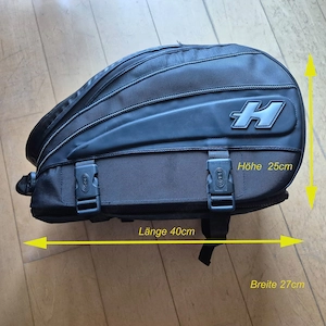 Biete einen gebrauchten, aber gut erhaltenen Tankrucksack an. Die Maße sind 40cm x 25cm x 27cm (siehe Abmessungen im Bild), inklusive Regenschutz.
