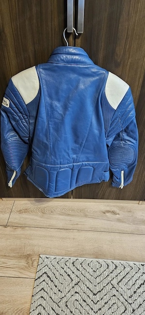 Motorrad Jacke blau-weis, echtes Leder, gr. 54, kaum getragen, keine Schweißspuren, das Weis ist noch weis. Nur an Abholer. VB 110 Euro.
