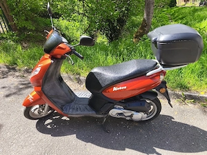 Verkaufe meiner Tochter ihren zuverlässigen und gepflegten Peugeot Kisbee in auffälligem Orange wegen Umstieg auf Motorrad. Der Roller ist ideal für Einsteiger, da er auf 25 km h gedrosselt ist (Mofa-Prüfbescheinigung ausreichend). Das Fahrzeug ist technisch in einem hervorragenden Zustand, da ich allein ...