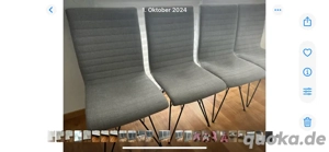 Verkaufe 4 moderne Design-Stühle mit stabilem Metallgestell und weicher, grauer Polsterung. Die Stühle sind sehr komfortabel, angenehm gepolstert und bieten einen hohen Sitzkomfort auch bei längerem Sitzen. Zeitloses, sehr stylisches Design, das perfekt in moderne Wohn- und Esszimmer passt.