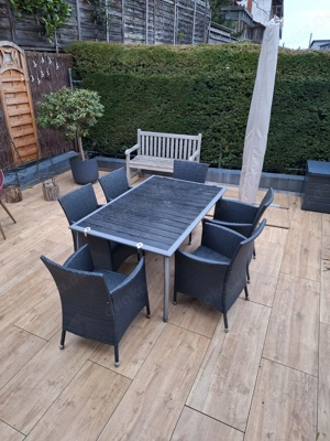 Gartentisch und 6 Stühle mit Auflagen an Selbstabholer in Waldbronn kostenlos abzugeben. Bei Interesse bitte direkt anrufen!