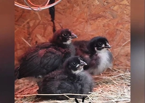 Mix Küken zwischen Ayam Cemani und Marans abzugeben sind ca. 3 Wochen alt. Preis ist pro Küken