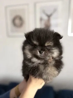 Zwergspitz Pomeranian süßer Hund xs winzig schwarz-braun