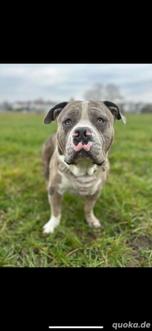 Deckrüde American Bully Unser Rüde Bobby steht als Deckrüde zur Verfügung. Er ist ein 2 Jahre alter, gesunder American Bully mit kräftigem Körperbau und einem stabilen, freundlichen Wesen. Name: Bobby Rasse: American Bully Alter: 2,5 Jahre Gewicht: ca. 49 kg Gesundheitszustand: voll gesund ...