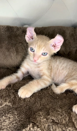Ein bezauberndes Elf Sphynx Kätzchen sucht ein liebevolles Zuhause! Geboren am 26. Februar, isst es bereits selbstständig und spielt sehr gerne. Seine auffälligen Elf-Ohren und das weiße Fell mit roten Flecken machen ihn besonders liebenswert. Der Kleine ist verschmust, anhänglich und liebt die Nähe ...