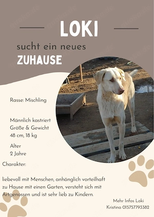 Liebevolle Pfote sucht Zuhause! Wir stellen vor: unser 2-jähriger Rüde Loki, kastriert, voller Lebensfreude und Liebe! Er ist sehr menschenbezogen, liebt Kinder und versteht sich mit allen Artgenossen. Ein Herz auf vier Pfoten, das Freude in jedes Zuhause bringt. Sein Traum: ein Zuhause mit Garten, ...