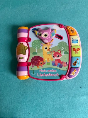 Hallo, hier biete ich ein VTech Baby Mein erstes Liederbuch in Rosa an. Es ist ein kunterbuntes Buch mit sieben Seiten und beweglichen Elementen, das zum Spielen, Zuhören und Mitsingen einlädt. Es ist ideal für Kinder von 9 bis 36 Monaten. Es hat verschiedene Tasten mit Instrumenten wie Gitarre, Schlagzeug, ...