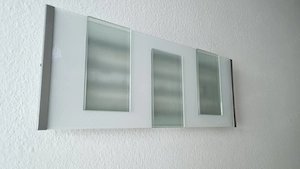 Grossmann Deckecnleuchte ca. 60 x 25 cm incls. Leuchtmittel (2 x 24 Watt Leuchtstoffröhre), Farbe Glas weiss, Gehäuse Metall silber Lampe mit Funktionsstörung - schaltet sich gelegentlich selbstständig aus.