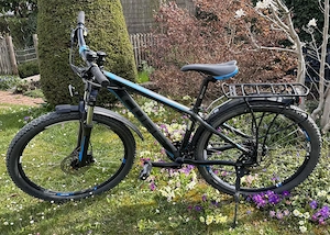Eigenschaften: - Aluminium-Rahmen, für Körpergröße bis ca. 1,60m - Farbe: dunkelgrau blau - Bremsen: hydraulische Scheibenbremsen Shimano BR-M 445 - Schaltung: Shimano Alivio 24 Gang - Bereifung: Schwalbe Smart Sam 26x2.25 - Federgabel: Suntour XCM Lockout - Schutzbleche - Gepäckträger - Seitenständer Das ...