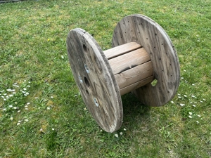 Verkauft wird hier eine gebrauchte ältere Kabelrolle aus Holt Die Kabelrolle ist schon älter aber ganz. Ideal als Tisch oder um darauf etwas zu dekorieren, hier gibt es viele Möglichkeiten. Hier die Maße der Kabelrolle: Durchmesser: 64 cm Durchmesser innen ca 30 cm Breite : 41 cm Die Kabelrollel ...