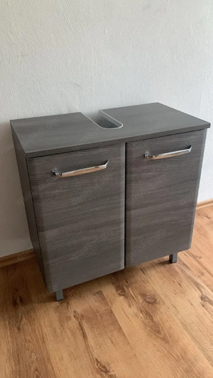 Verkaufe hier ein passendes graue Badezimmer-Unterschrank. Es bietet Ihnen praktischen Stauraum und passen perfekt unter ein Waschbecken oder als freistehende Badmöbel: Moderne graue Optik in Holzdekor Kompakte Maße, ideal für kleinere Badezimmer Stabile Konstruktion Es befindet sich in gutem ...