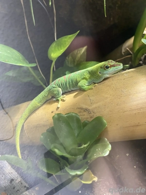 Adulte Phelsuma-grandis (1.1), Alter ca. 13 Jahre ( Die Tiere können locker bis 20+ Jahre altwerden). Sehr ruhige, stabile Tiere, harmonierendes Paar. Regelmäßige Eiablage vorhanden. Hinweis zum Weibchen (letztes Bild): Kalkbacken Schwanz falsch verwachsen Rein optischer Makel verursacht von Falscher ...