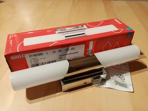 Hallo, Zum Verkauf steht 2x die abgebildete Badlampe, Neupreis war 85 Euro. Ein Exemplar ist komplett originalverpackt und ungeöffnet. Das zweite Exemplar wurde geöffnet und zur Montage vorbereitet, jedoch nicht montiert. Die ungeöffnete Lampe kostet 30 Euro, die geöffnete 20 Euro, beide zusammen ...