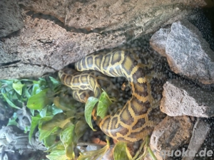 Ich verkaufe einen SEHR lieben Tigerpython Caramel 1.0, der ca. 2 Jahre alt ist. Das Tier ist gesund, und frisst SEHR gut! Schlechte Laune hat er nur ein wenig in der Häutungsphase. Sonst NIE!!! Er ist ca. 130 - 150 lang. Ich wäre bereit 50km entgegenzufahren, da ich das Tier nicht versenden möchte ...