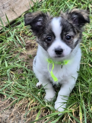 Süsser Chihuahua Langhaar Rüde Welpe sucht ab 14.03 sein liebevolles zu Hause. Aktuell 11 Wochen alt. Brindle-Weiss-Schecke Kein Mini! Absolut liebenswert. Er nimmt am alltäglichen Leben teil. Ist welpentypisch verspielt, aufgeweckt und ein richtiger Schmuser. Er frisst Nassfutter und Trockenfutter. ...