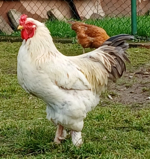 Unser lieber Hahn muss leider ausziehen weil er vom Alt-Hahn nicht mehr akzeptiert wird. Er ist ein Brahma-Mix und 3 Jahre alt .
