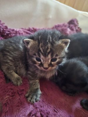 Von unserer Bekannten die Mama hat beschlossen kurz vor ihrer Kastration noch Banys zu bekommen..was beim Tierarzt entdeckt wurde...das Resultat sind 4 wunderschöne kitten.. sie wachsen mitten im Alltagsgeschehen auf...und sind bereits entwurmt..und bei Abgabe natürlich top sozialisiert und stubenrein. selbstverständlich ...
