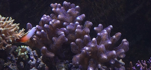 Seriatopora caliendrum violett mit grünen Spitzen Meerwasser Nachzucht Koralle