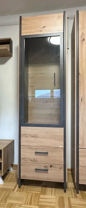 Hiermit verkaufe ich eine moderne Standvitrine in heller Eiche-Nachbildung, da ich bald umziehen werde. Ausstattung: Oben - 1 Glastur, 2 Glasböden, 1 Holzboden. Unten - 2 praktische Schubladen. Zustand: Insgesamt sehr gepflegt. Die Außentür hat eine kleine Schramme. Detailfoto ist vorhanden Maße: Höhe: ...