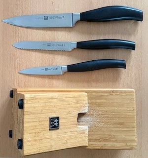 Drei Zwilling-Messer incl. Zwilling-Messerblock