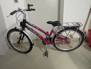 Verkaufe ein 20 Zoll Kinderfahrrad von Puky. Ausgestattet mit Gepäckträger, Beleuchtung, Rücktrittbremse und zwei Bremsen vorne, 3 Gänge, Reflektoren vorne und hinten. Klingel muss selbst angebracht werden. Sattel und Lenker in Höhe verstellbar. Farbe weiß und pink mit der Aufschrift Skyride (model ...