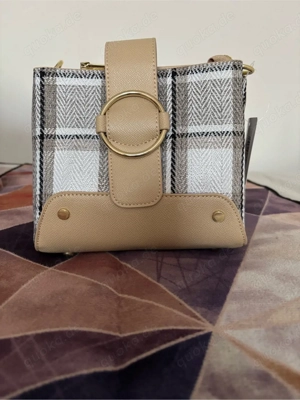 Neue Damenhandtasche, unbenutzt. Modernes Design in Beige mit kariertem Muster und goldenen Details. Praktisch und ideal für Alltag oder Ausgehen. Preis: 15 Versand oder Abholung möglich. Privatverkauf, keine Rücknahme.