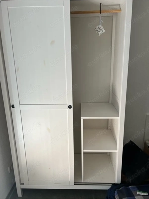 Ich verkaufe meinen HEMNES Kleiderschrank mit Schiebetüren in sehr gutem Zustand. Er bietet eine durchgängige Kleiderstange und auf der rechten Seite zwei praktische Regalböden für zusätzlichen Stauraum. Der Schrank ist bereits aufgebaut und wird nur in diesem Zustand abgegeben (keine Demontage). Der ...