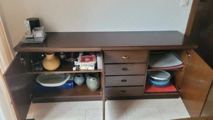 Sideboartd von Omnia in Eiche P 11. Maße: 183 breit, 76 hoch 47 tief. Doppeltüre 84 breit, Schubladen 46, Türe 46 Regalboden: 84 u. 178 lang und 18 tief.