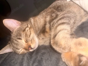 verkaufe meine Katze da meine Tochter eine allergiesche Reaktion bekommen hat. gebe sie nur an gute händen ab. bengal mit normal Katze gemischt.
