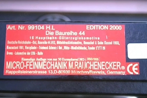 Aus der Edelschmiede Mico Feinmechanik biete ich hier das Modell Mico Feinmechanik 99104 H.L BR 44 012 Lokversuchsanstalt Halle Rbd Halle, Bw Halle Messing Handarbeitsmodell, in limitierte Auflage von gesamt 50 Stück an Sehr gesuchtes Modell, Die kompletten Begleitpapiere, Zertifikat und weiße Handschuhe ...