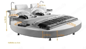 Wir verkaufen unser gebrauchtes Rundbett. Achtung! Das Bett musste bereits abgebaut bzw. unserem neuen Bett weichen und kann somit sofort mitgenommen werden. Maße: Liegefläche 1,60m x 2,00m. inkl. 2 Lattenroste (0,80 m 2,00m) + 1 Matratze und 2 integrierte Nachttische (Lederoptik in Farbe weiß). Das ...