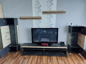 Ich verkaufe hier eine 5-teilige Wohnwand (ohne Fernseher etc.). Die Wohnwand ist schon ein paar Jahre alt, aber noch gut erhalten. Eine kleine Schramme kann man auf einem der Bilder erkennen. Der linke Schrank ist etwas schief, lässt sich aber bestimmt durch jemanden mit Kenntnissen berichtigen. Die ...