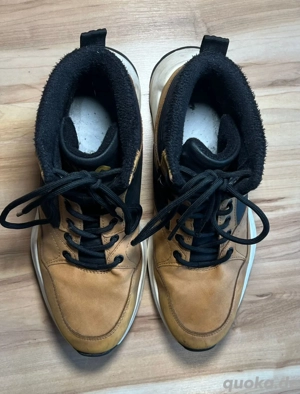 Fila High Top Winterschuh Cognacfarben, Größe 41 robuster, gefütterter High Top Sneaker im Street Outdoor Look. Außen cognacfarbenes Lederimitat mit schwarzen Einsätzen, weiches schwarzes Innenfutter, jedoch leider keine Sohle. Marke: Fila Modelltyp: High Top Sneaker Winterschuh Farbe: Cognac ...