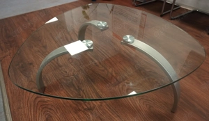 Wohnzimmer-Glastisch, triangulär- ovales Design, Dm.90cm