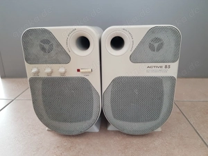 Privatverkauf von gebrauchten und funktionsfähigen PC, Laptop Lautsprecherboxen. Multimedia speaker Active 85, Power Knopf, seperate Volume Bass Treble Regler 220 230 V Stromanschluß Anschluß an PC über 3,5mm Klinkenstecker Maße: 140x175x230 mm (bxtxh) Nichtraucherhaushalt! Verkauf nur an Selbstabholer ...
