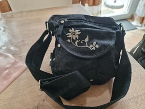 neue, unbenutzte schwarze Trachten Handtasche aus Stoff