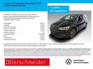 Volkswagen Touran 1.5 TSI Highline LED SHZG BC TÜV 17 Zoll. Volkswagen Touran 1.5 TSI Highline LED SHZG BC TÜV 17 ZollAUSRÜSTUNG: DAB-Radio,Tagfahrlicht,Klimaanlage,Radio,Lederlenkrad,ESP,Isofix,Kopfairbag,Elektrische Seitenspiegel,CD,ABS,Berganfahrassistent,Umklappbarer Beifahrersitz,LED-Tagfahrlicht,Innenspiegel ...