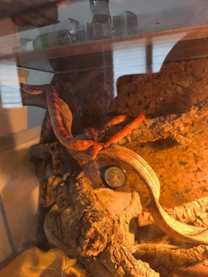 Kornnatter mit Terrarium, Terrarium hat seitlich einen Sprung hat aber keine Auswirkung. Kai ist 3 Jahre alt. bei Fragen einfach melden.